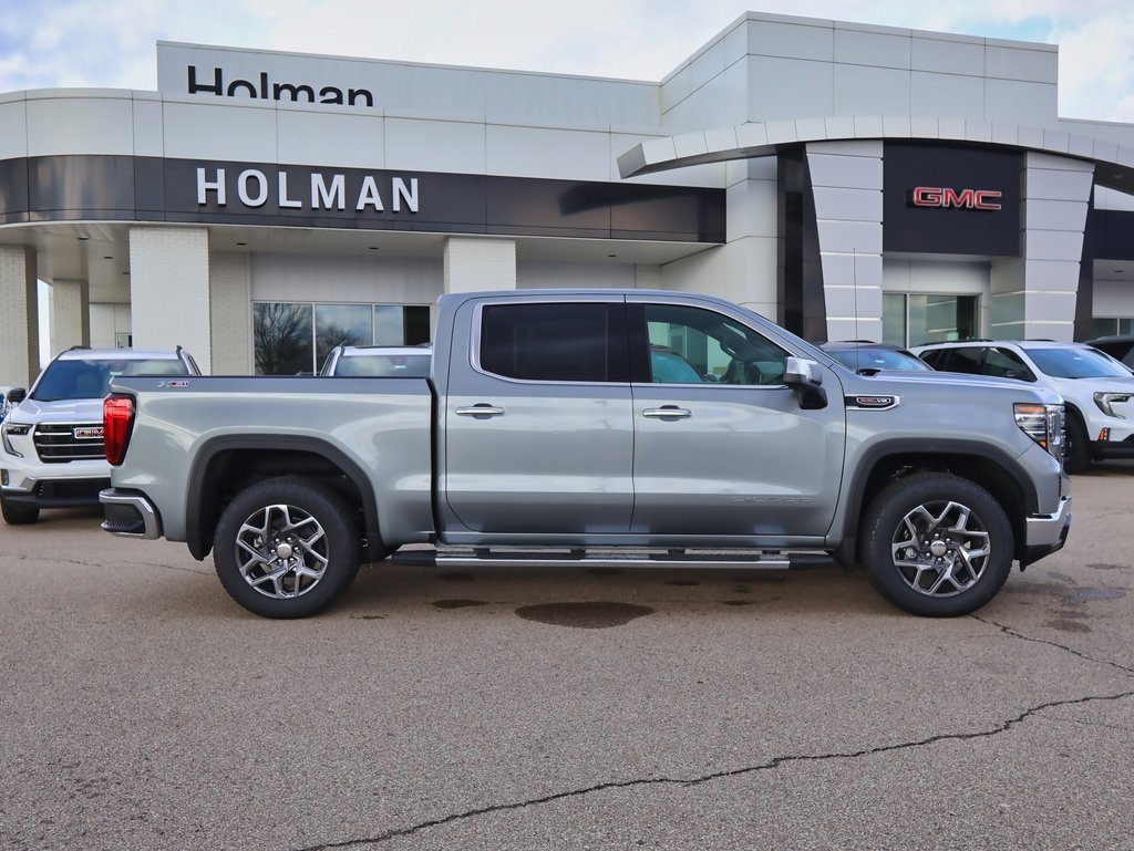 Holman Motors Inc is pleased to offer this great-looking 2026 GMC Sierra 1500 SLT in Sterling, beautifully equipped with Standard Suspension Package, Trailering Package (Hitch Guidance), 10-Way Power Driver Seat Adjuster w/Lumbar, 10-Way Power Passenger Seat Adjuster w/Lumbar, 120-Volt Bed Mounted Power Outlet, 120-Volt Interior Power Outlet, 170 Amp Alternator, 2 Charge/Data USB Ports, 2 Type-C Charge-Only Rear USB Ports, 3.23 Rear Axle Ratio, 4-Wheel Disc Brakes, 6 Speakers, 6-Speaker Audio System Feature, ABS brakes, Air Conditioning, Alloy wheels, AM/FM radio: SiriusXM with 360L, Apple CarPlay/Android Auto, Auto High-beam Headlights, Auto-dimming door mirrors, Auto-dimming Rear-View mirror, Auto-Locking Rear Differential, Automatic Emergency Braking, Automatic temperature control, Auxiliary External Transmission Oil Cooler, Brake assist, Buckle to Drive, Bumpers: chrome, Chrome Header & Chrome Grille Insert Bars, Color-Keyed Carpeting Floor Covering, Compass, Deep-Tinted Glass, Delay-off headlights, Driver door bin, Driver Memory, Driver vanity mirror, Dual front impact airbags, Dual front side impact airbags, Electric Rear-Window Defogger, Electronic Stability Control, Emergency communication system: OnStar, Following Distance Indicator, Forward Collision Alert, Front 40/20/40 Split-Bench Seat, Front anti-roll bar, Front Center Armrest w/Storage, Front dual zone A/C, Front fog lights, Front Frame-Mounted Black Recovery Hooks, Front Pedestrian Braking, Front Rain-Sensing Wipers, Front reading lights, Front wheel independent suspension, Fully automatic headlights, HD Rear Vision Camera, Heated door mirrors, Heated Driver & Front Outboard Passenger Seating, Heated front seats, Heated steering wheel, Illuminated entry, Integrated Trailer Brake Controller, IntelliBeam Automatic High Beam On/Off, Keyless Open & Start, Lane Keep Assist w/Lane Departure Warning, LED Cargo Area Lighting, Low tire pressure warning, Manual Tilt-Wheel & Telescoping Steering Column, Memory seat, Navigation System, Occupant sensing airbag, OnStar Services Capable, Outside temperature display, Overhead airbag, Overhead console, Panic alarm, Passenger door bin, Passenger vanity mirror, Perf Leather-Appointed Front Outboard Seat Trim, Perimeter Lighting, Power Door Locks, Power door mirrors, Power driver seat, Power Front Passenger Windows w/Express Up/Down, Power Front Windows w/Driver Express Up/Down, Power passenger seat, Power Rear Windows w/Express Down, Power steering, Power windows, Push Button Start, Radio data system, Radio: Premium GMC Infotainment Audio System, Rain sensing wipers, Rear reading lights, Rear seat center armrest, Rear step bumper, Rear Wheelhouse Liners, Rear window defroster, Remote keyless entry, Remote Vehicle Starter System, Security system, SiriusXM w/360L Trial Subscription, Speed control, Speed-sensing steering, Split folding rear seat, Steering Wheel Audio Controls, Steering wheel mounted audio controls, Tachometer, Telescoping steering wheel, Theft Deterrent System (Unauthorized Entry), Tilt steering wheel, Traction control, Trip computer, Variably intermittent wipers, Voltmeter, Wheels: 18 x 8.5 6-Spoke Machined Aluminum, Wi-Fi Hotspot Capable, and Wireless Apple CarPlay/Wireless Android Auto! 4WD Price includes: $1750 - Buick & GMC Consumer Cash Program. Exp. 02/02/2026 $500 - GM Bonus Cash. Exp. 02/02/2026