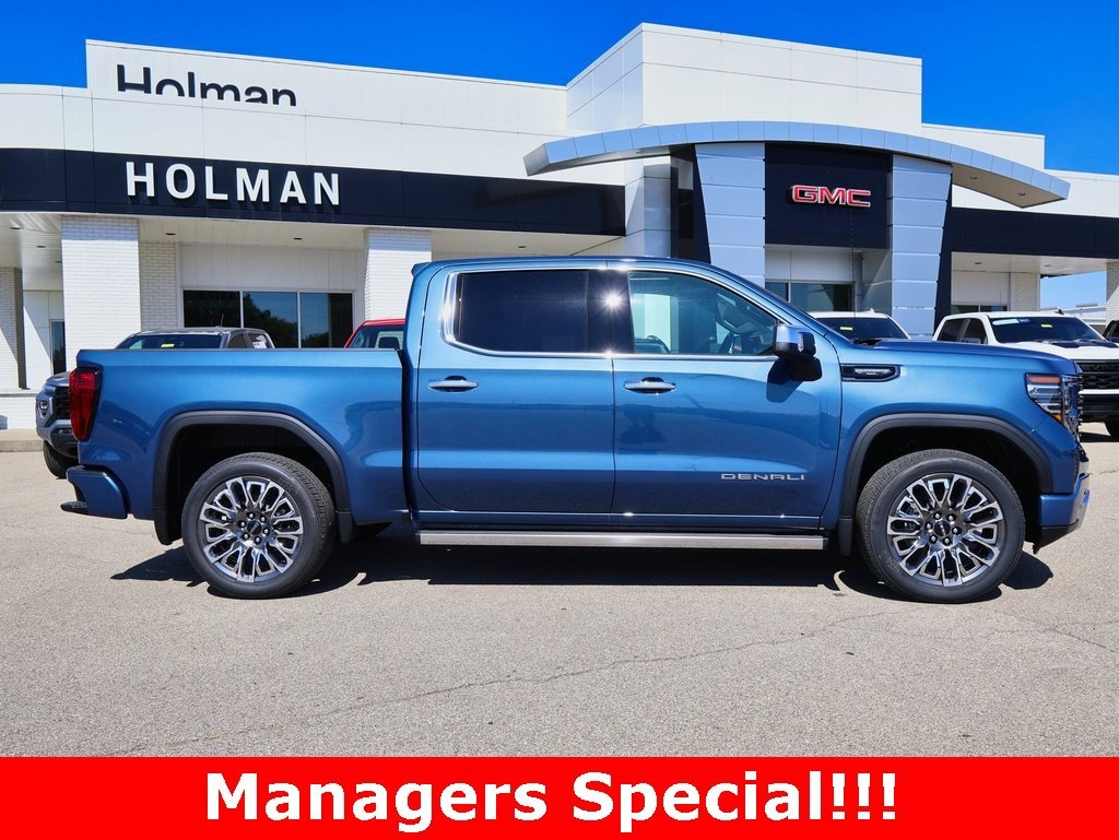 Holman Motors Inc is pleased to offer this wonderful-looking 2026 GMC Sierra 1500 Denali Ultimate in Downpour Metallic, beautifully equipped with Preferred Equipment Group 5SB (120-Volt Bed Mounted Power Outlet, 120-Volt Interior Power Outlet, 2 Charge/Data USB Ports Inside Center Console, 2 Type-C Charge-Only Rear USB Ports, 2 USB Ports, Auto-Locking Rear Differential, Bed View Camera, Bose Premium Series w/12-Speaker System, Chrome Recovery Hooks, Color-Keyed Carpeting Floor Covering, Deep-Tinted Glass, Electric Rear-Window Defogger, Floor-Mounted Center Console, Front Rain-Sensing Wipers, HD Surround Vision, Heated 2nd Row Outboard Seats, Heated Driver & Front Outboard Passenger Seating, Heavy-Duty Air Filter, High Gloss Black Header w/Signature Denali Grille, Hill Descent Control, Hitch View, In-Vehicle Trailering System App, Integrated Trailer Brake Controller, Keyless Open & Start, LED Cargo Area Lighting, Multicolor 15 Diagonal Head-Up Display, MultiPro Tailgate Audio System by Kicker (LPO), OnStar Services Capable, Perimeter Lighting, Power Door Locks, Power Front Passenger Windows w/Express Up/Down, Power Front Windows w/Driver Express Up/Down, Power Rake & Telescoping Steering Column, Power Rear Windows w/Express Down, Power Sliding Rear Window w/Rear Defogger, Power Sunroof, Push Button Start, Rear Cross Traffic Braking, Rear Pedestrian Detection, Rear Wheelhouse Liners, Remote Vehicle Starter System, SiriusXM w/360L Trial Subscription, Spray-On Pickup Bedliner w/GMC Logo, Steering Wheel Audio Controls, Theft Deterrent System (Unauthorized Entry), Trailer Camera Provisions, Trailer Side Blind Zone Alert, Trailer Tire Pressure Monitor System, Ultrasonic Front & Rear Park Assist, Universal Home Remote, Ventilated Driver & Front Passenger Seats, Wi-Fi Hotspot Capable, and Wireless Charging), Trailering Package (Hitch Guidance), 12 Speakers, 16-Way Power Driver Seat Adjuster w/Lumbar, 16-Way Power Passenger Seat Adjuster w/Lumbar, 170 Amp Alternator, 3.23 Rear Axle Ratio, 4-Wheel Disc Brakes, ABS brakes, Adaptive suspension, Air Conditioning, Alloy wheels, AM/FM radio: SiriusXM with 360L, Apple CarPlay/Android Auto, Auto High-beam Headlights, Auto-dimming door mirrors, Auto-dimming Rear-View mirror, Automatic temperature control, Body Color Wheel Arch Moldings (LPO), Brake assist, Buckle to Drive, Bumpers: body-color, Carbon Fiber Composite Bed, Compass, Delay-off headlights, Denali Premium Suspension w/Adaptive Ride Control, Driver door bin, Driver Memory, Driver vanity mirror, Dual Active Exhaust, Dual front impact airbags, Dual front side impact airbags, Electronic Stability Control, Emergency communication system: OnStar, Enhanced Automatic Emergency Braking, Following Distance Indicator, Forward Collision Alert, Front anti-roll bar, Front Bucket Seats, Front Center Armrest, Front dual zone A/C, Front fog lights, Front Pedestrian Braking, Front reading lights, Front wheel independent suspension, Full Grain Leather Seat Trim, Fully automatic headlights, Garage door transmitter, Genuine wood console insert, Genuine wood dashboard insert, Genuine wood door panel insert, Hard Folding Truck Bed Cover (LPO), Heads-Up Display, Heated door mirrors, Heated front seats, Heated rear seats, Heated steering wheel, Illuminated entry, IntelliBeam Automatic High Beam On/Off, Low tire pressure warning, Memory seat, Navigation System, Occupant sensing airbag, Outside temperature display, Overhead airbag, Overhead console, Panic alarm, Passenger door bin, Passenger vanity mirror, Power door mirrors, Power driver seat, Power moonroof, Power passenger seat, Power steering, Power windows, Radio data system, Radio: Premium GMC Infotainment Audio System, Rain sensing wipers, Rear reading lights, Rear seat center armrest, Rear step bumper, Rear Underseat Storage ( Price includes: $1500 - Buick & GMC Consumer Cash Program. Exp. 01/02/2026 $250 - December GMC Sales Event LD Bonus Cash. Exp. 01/02/2026 $500 - GM Bonus Cash. Exp. 01/02/2026
