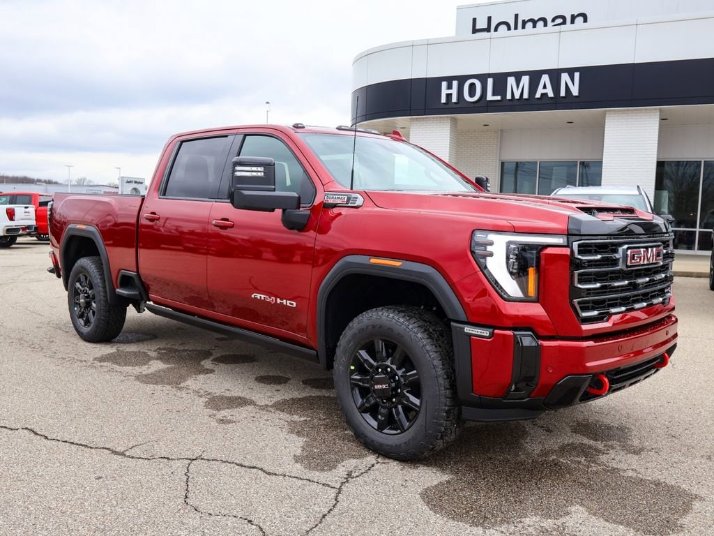 Holman Motors Inc is pumped up to offer this terrific-looking 2026 GMC Sierra 2500HD AT4 in Volcanic Red, beautifully equipped with AT4 Preferred Package (LED Smoked Amber Roof Marker Lamps, Power Sliding Rear Window with Defogger, and Universal Home Remote), AT4 Premium Plus Package (Power Sunroof), Heavy Duty Front Spring/Camper Package, Preferred Equipment Group 4SB (120-Volt Bed Mounted Power Outlet, 120-Volt Instrument Panel Power Outlet, 2 Charge-Only Rear USB Ports, 2 Charge/Data USB Ports Inside Center Console, 2 USB Ports, 2-Speed Active Transfer Case, Bed View Camera with Two Trailer Camera Provisions, Bose Premium 7-Speaker Sound System, Deep-Tinted Glass, Electric Rear-Window Defogger, Floor-Mounted Center Console, Front Premium Floor Liners with Removable Carpet Insert, Front Rain-Sensing Wipers, Gloss Black Header Grille and Grille Insert Bars, HD Surround Vision, Heated 2nd Row Outboard Seats, Heated Driver and Front Outboard Passenger Seats, Keyless Open and Start, LED Cargo Area Lighting, Manual Tilt-Wheel/Telescoping Steering Column, OnStar Services Capable, Power Front Passenger Windows with Express Up/Down, Push Button Start, Rear Cross Traffic Alert, Rear Premium Floor Liners with Removable Carpet Insert, Rear Wheelhouse Liners, Remote Vehicle Starter System, Safety Alert Seat, SiriusXM with 360L Trial Subscription, Spray-on Pickup Bedliner with GMC Logo, Steering Wheel Audio Controls, Trailer Cam Provisions and Trailer Viewing Software, Trailer Side Blind Zone Alert, Ultrasonic Front and Rear Park Assist, Unauthorized Entry Theft-Deterrent System, Ventilated Driver and Front Passenger Seats, Wireless Charging, and Wireless Phone Projection), Technology Package (Inside Rearview Auo-Dimming Rear Camera Mirror and Multicolor 15 Diagonal Head-Up Display), X31 Off-Road Package (Hill Descent Control and Off-Road Suspension), 10-Way Power Driver Seat Adjuster with Lumbar, 10-Way Power Passenger Seat Adjuster with Lumbar, 220-Amp Alternator, 4-Wheel Disc Brakes, 7 Speakers, ABS brakes, Air Conditioning, Alloy wheels, AM/FM radio: SiriusXM with 360L, Apple CarPlay/Android Auto, Auto High-beam Headlights, Auto-dimming door mirrors, Auto-dimming Rear-View mirror, Automatic Emergency Braking, Automatic temperature control, Brake assist, Buckle to Drive, Bumpers: body-color, Compass, Delay-off headlights, Driver door bin, Driver Memory, Driver vanity mirror, Dual front impact airbags, Dual front side impact airbags, Electronic Stability Control, Emergency communication system: OnStar, Engine Block Heater, Exhaust Brake, Following Distance Indicator, Forward Collision Alert, Front anti-roll bar, Front Bucket Seats, Front Center Armrest, Front dual zone A/C, Front fog lights, Front Pedestrian Braking, Front reading lights, Front wheel independent suspension, Fully automatic headlights, Heated door mirrors, Heated front seats, Heated rear seats, Heated steering wheel, Heavy-Duty 80 Amp Battery, Hitch Guidance with Hitch View, Illuminated entry, in-Vehicle Trailering System App, IntelliBeam Automatic High Beam on/Off, Lane Departure Warning System, Low tire pressure warning, Memory seat, Occupant sensing airbag, Off-Road High Clearance Step, Outside temperature display, Overhead airbag, Overhead console, Panic alarm, Passenger door bin, Passenger vanity mirror, Perforated Leather-Appointed Front Seat Trim, Pickup Box, Power door mirrors, Power driver seat, Power passenger seat, Power steering, Power windows, Power-Retractable Black Assist Steps, Premium audio system: Premium GMC Infotainment System, Radio: AM/FM Stereo with Premium GMC Infotainment System, Rain sensing wipers, Rear reading lights, Rear seat center armrest, Rear step bumper, Rear window defroster, Remote keyless entry, Security system, Speed control, Speed-sensing steering, Split folding rear seat, Steering wheel mounted audio controls, Tachometer, Telescoping steering wheel, Ti Price includes: $1000 - Buic