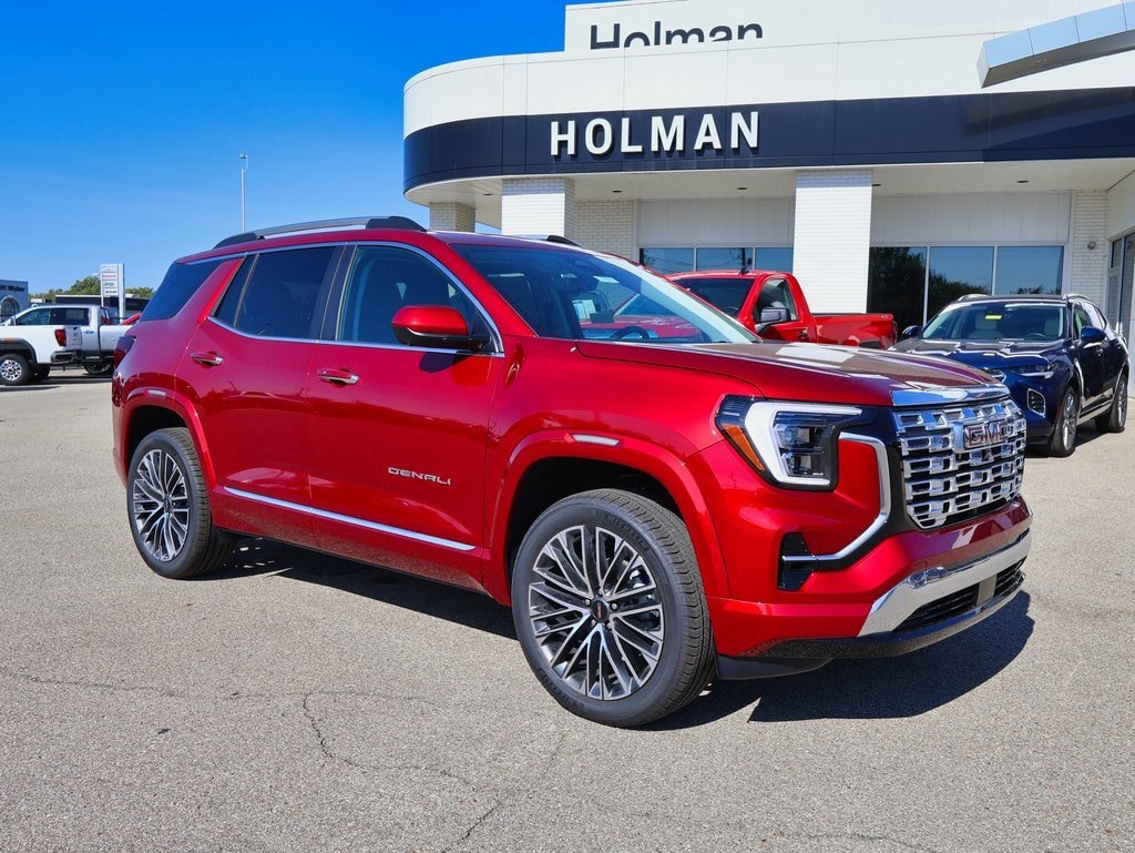 Holman Motors Inc is excited to offer this great-looking 2026 GMC Terrain Denali in Volcanic Red, beautifully equipped with Floor Liner Package (LPO) (All-Weather Cargo Mat (LPO), Front All-Weather Floor Liners (LPO), and Second Row All-Weather Mat (LPO)), Preferred Equipment Group 5SB, 2-Way Power Driver Lumbar Seat Adjuster, 3 Years SiriusXM, 3.47 Final Drive Axle Ratio, 4-Wheel Disc Brakes, 6 Speakers, 6-Speaker Audio System Feature, 8-Way Power Driver Seat Adjuster, ABS brakes, Air Conditioning, Alloy wheels, AM/FM radio: SiriusXM, Auto High-beam Headlights, Automatic temperature control, Brake assist, Bumpers: body-color, Compass, Delay-off headlights, Driver & Front Passenger Heated Seats, Driver door bin, Driver vanity mirror, Dual front impact airbags, Dual front side impact airbags, Electronic Stability Control, Emergency communication system: OnStar and GMC connected services capable, Four wheel independent suspension, Front anti-roll bar, Front Bucket Seats, Front Center Armrest, Front dual zone A/C, Front fog lights, Front reading lights, Fully automatic headlights, Garage door transmitter, Heated door mirrors, Heated front seats, Heated rear seats, Heated steering wheel, Illuminated entry, Low tire pressure warning, Memory seat, Navigation System, Occupant sensing airbag, Outside temperature display, Overhead airbag, Overhead console, Panic alarm, Passenger door bin, Passenger vanity mirror, Perforated Leather-Appointed Seat Trim, Power door mirrors, Power driver seat, Power Liftgate, Power passenger seat, Power steering, Power windows, Radio data system, Radio: Premium GMC Infotainment System, Rain sensing wipers, Rear air conditioning, Rear anti-roll bar, Rear seat center armrest, Rear window defroster, Rear window wiper, Remote keyless entry, Security system, Speed control, Speed-sensing steering, Split folding rear seat, Spoiler, Sport steering wheel, Steering wheel mounted audio controls, Tachometer, Telescoping steering wheel, Tilt steering wheel, Traction control, Trip computer, Variably intermittent wipers, Ventilated Driver Seat, Ventilated Front Passenger Seat, Ventilated front seats, Wheels: 19 x 7.5 Midnight Silver Aluminum, Wheels: 20 x 8 After Midnight Aluminum, and Wireless Apple CarPlay/Wireless Android Auto! AWD